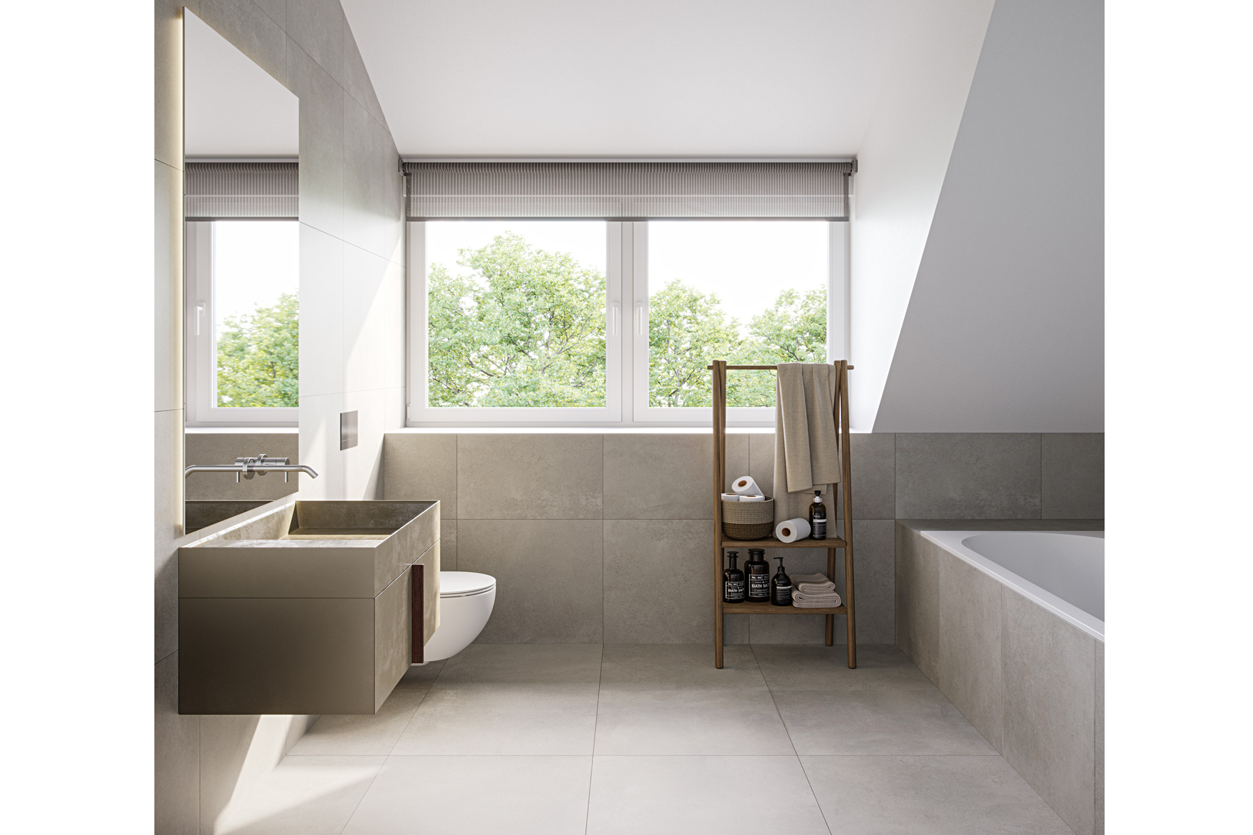 - hochwertige Fliesen sowie elegante Sanitärkeramik